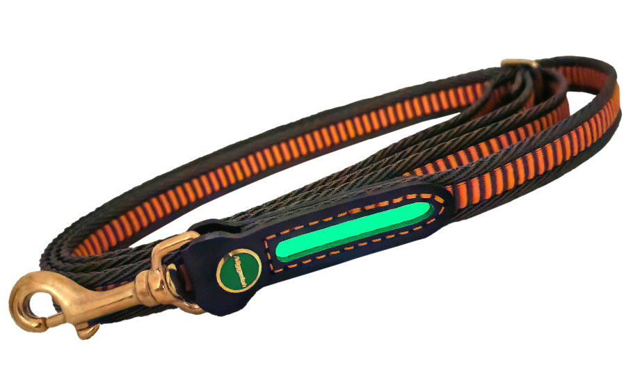 - Das Mittelstück der Leine ist aus Biothane Gold Opaque in leuchtorange gefertigt.